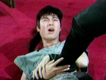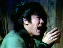 「桂英姑娘,你千萬別開門!」桂英心頭更慌,猶疑片刻,擔心柱兒安危,她還是提心吊膽的開了門。眼前纏鬥的兩人讓她驚呼一聲,看見她,蒙面人一拳打翻柱兒,就要向她衝過來。柱兒打不過,只有撲上前死死抱住他的雙腿:「桂英姑娘,你快走,你快走!」這種情形,只嚇得桂英面色蒼