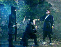來,讓夏震縮手不迭,只見兩道黑影前後而至,一拳一腳,打的夏震狼狽不堪,其中一個蒙面的黑衣人一劍止住逃竄的夏震,轉頭向驚魂未定的桂英言道:「這位姑娘,不要怕我兄弟犯上殺人之罪,要殺要剮,但憑你一句話。」桂英不知兩人是好人還是壞人,不敢冒然相應;但見另外那未蒙面的黑衣人雖虯髯滿腮,卻不失正氣,何況夏震罪不至死,也不想讓救她的兩位俠客背上殺