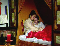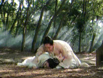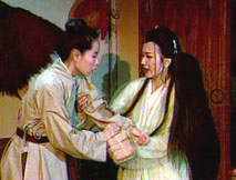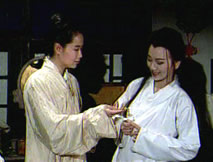 為了她,他才會弄得這般狼狽,思及於此,滿眶盈淚,桂英不由自責萬分:「夏震要這桂花糕你就給他嘛,你這份情,我該怎麼還你,我該怎麼還你!」她啜泣的模樣,讓他心疼不已;輕輕托起她美麗而哀傷的臉龐,她含淚的雙眸