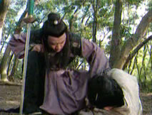 走上前蹲下身,似要確定仲平是否已死,可伸手剛要碰觸仲平,毫無防備的他卻被詐暈的仲平一刀穿心。不相信的看著胸前的利刃,夏震倒地氣絕。連忙上