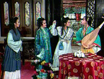 仲平聲言厲色止住她的舉動。拿起桌上的書本,仲平又收起臉色:「等我看完這一章節,再陪小姐遊湖去吧。」仲平的一怒一喜,把崔婉兒這個飽受溺愛、榮寵的相府千金耍得是團團轉,殷勤的為仲平扇起涼風,崔婉兒笑逐顏開。