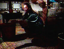 就這樣,桂英在飄紅院當起差來。每日擦桌椅、洗碗盤、端茶遞水……,晚上還要到磨房受罪,一桶桶的豆子沒磨成漿,就連飯也沒得吃。此時的桂英,一頭應該是烏黑亮麗的秀髮,凌亂糾結的披散著;嬌柔纖弱的身軀上「掛」著襤褸的粗布衣裳;白淨秀美的臉龐憔悴又滄桑,只有眼底一直