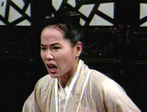 以重見天日了,我可以去找相公了!」卻見兩個凶神惡煞的人衝出將她攔住,桂英嚇得轉身欲跑,站在身後一臉凶相的老鴇一把抓住她:「想跑,給我帶回飄紅院!」桂英不停掙扎著:「我不回去!放開我!我不要回去!」嬌弱的身軀如何能與強壯的臂膀抵抗。被抓回飄紅院的桂英面對老鴇的逼迫毫不膽怯: