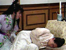 竟在飯菜中撒滿食鹽,攪拌攪拌,讓小鈴子為仲平端去。乖巧可愛的小鈴子在桌上放下飯菜,暗笑離開。小鈴子的鬼祟讓仲平心生疑竇,偷偷的將一點米飯放入口中,「呸!」仲平忙吐不迭,崔婉兒竟敢戲弄他!仲平計上心來,移坐