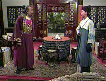 客盈門,熱鬧非凡。喜樂中也有傷心人,可憐的洪洛眼見心上人與他人結連理,滿肚苦水卻只有自己知;而身為新郎的仲平也無半絲喜氣,一臉冷漠,像個傀儡般與婉兒拜了天地,在洪洛悲傷的眼神、賓客熱切的祝賀、崔貴得意的狂笑聲中被送入了洞房。