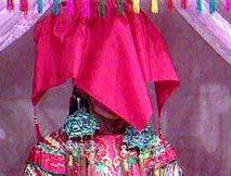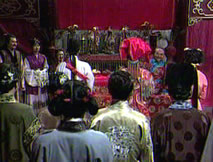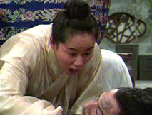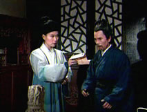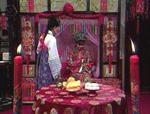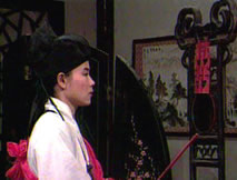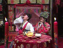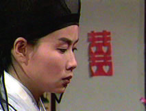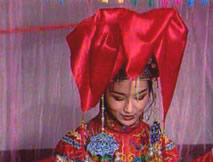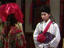 地一把拂去新娘頭上的紅帕。頭戴鳳冠、輕笑嫣然的桂英含情脈脈抬起頭來。是她嗎?是朝思暮想的她嗎?仲平忙定定神,唉,現實終歸還是現實,眼前的
