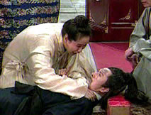 哭連連的仲平雙手已神不知鬼不覺地滑上王復的咽喉頸側,用力掐下。王復仰頭挺項,筋肉僵硬,似要竭盡全力喘上被仲平死死扼住的那口氣,但終於還是雙腳一蹬,一命嗚呼。仲平暗吁一口氣,終於放下了心頭大石。