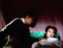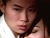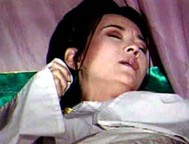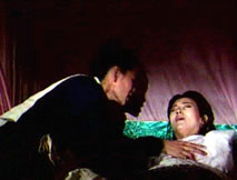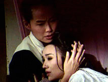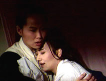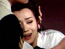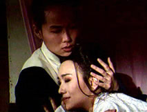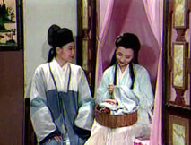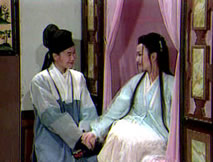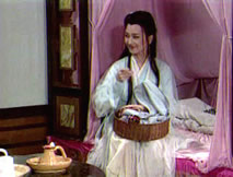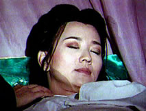 伸出了手,手剛觸到髮簪,忽然,熟睡中的桂英皺緊了雙眉,面浮痛苦之色,無意識地叫喚著:「相公!仲平!相公救我,仲平!」手似乎掙扎著想捉住些什麼。仲平哪還顧得髮簪,急忙握住了她的手:「娘子,娘子醒醒,娘子。」欲將她從噩夢中喚醒。桂英驚跳而起,不停地喘息著,仲平輕拍她的背脊,連聲安慰:「娘子,不要怕,不要怕,只是一場惡夢;有我在,有我在你身邊,