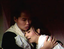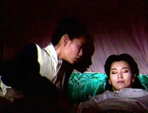 寧謐深夜,明月當空,絲絲縷縷的月光悄悄地滑過窗欞、溜進屋來,清冷的光芒更是喚醒了仲平胸中那股龐大的不安感。垂眼端視身旁沉睡的她,輕輕喊出:「桂英,桂英。」她動了動,依然沉醉在夢中。仲平向她睡夢中也緊握在胸前的髮簪伸出了手,剛要觸及,卻又驟然縮回了手。起身坐在床沿,他心