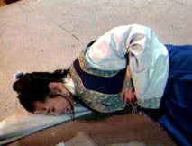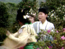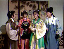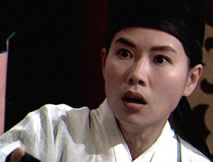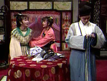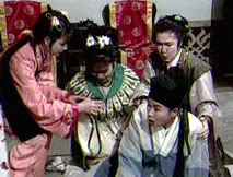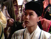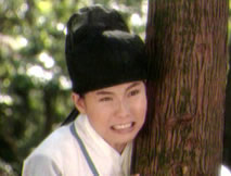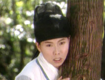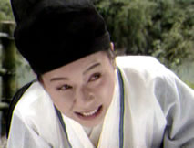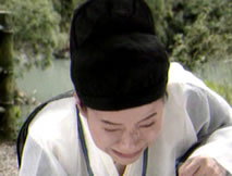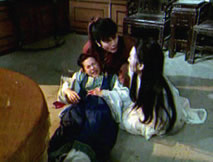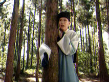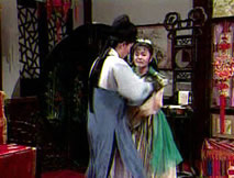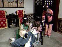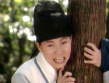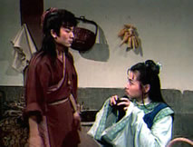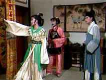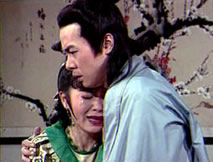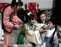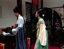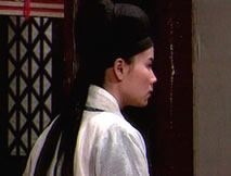 春香的脖子上,黑衣人衝著驚魂未定的桂英叫道:「你不要過來!」桂英以為是劫財的匪類,忙取下耳墜:「你快放開她,這些全都給你。」黑衣人似乎很緊張,提刀的手有些顫抖:「你,你還有一支髮簪,快,把髮簪拿出來。」桂