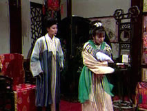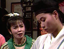 近年來,相國夫人每日在相府佛堂中吃齋念佛,已不理家事,如今婉兒哭泣來到,讓她莫名的嚇了一跳。仲平後腳追來:「婉兒,聽我說,聽我說嘛!」婉兒卻要他在母親面前說個明白,仲平如何說得出,尷尬無言了。相國夫人只當是夫妻拌嘴,忙相勸幾句。婉兒不理會母親的安撫與仲平的道歉,指