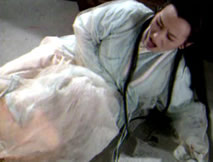 腳踢上桂英的腹部,將她踹開。春香驚呼:「桂英姐!」衝上前死死抓住小六子:「我跟你拼了!」小六子一心想脫困,手起刀落,鋒利的刀口劃過春香的肚腹,春香倒地不起。小六子回過神來,嚇得扔下菜刀轉身就跑,與聽到動靜而來的隔鄰的大娘