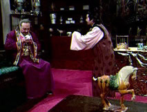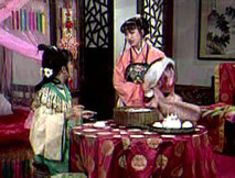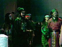 大哥!」愕然站起,這是鍾大哥的聲音!後院飲酒彈箏的,可不正是義兄鍾馗。仲平驚喜交加:「鍾大哥,沒想到會在這兒見到你。」審視著仲平,鍾馗