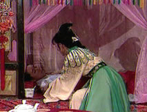 桂英在地界聲聲控訴,她哪知,此刻自己最憎惡的人已為她三天三夜粒米未進。妻子的婉勸他聽不到,臉龐的淚水他看不見,他唯一的動作就是轉頭避過送至唇邊的白米稀粥,他僅剩的感覺只有那梗塞在胸的錐心痛苦,讓他不能