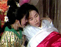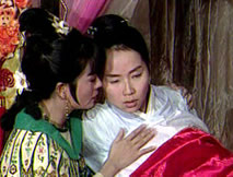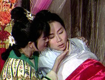 對鍾馗譴責的目光,仲平顫聲道:「桂英她……她死了。」上前一把抓住仲平,鍾馗怒吼道:「你說什麼?你說她死了?她怎麼會死?為什麼會死?!」甩開仲平,鍾馗責罵聲中有著痛心:「我親手把桂英交給你,要你好好善待她,她為什麼會死呢?!」仲平哽咽著:「她是在海神廟上吊自盡的。」「她