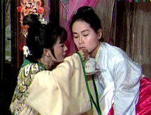 小鈴子早對屢屢辜負小姐的仲平心懷不滿,看見婉兒還在為他縫製衣衫,再也按捺不住,不顧尊卑,一把搶過婉兒手中的衣袍,大聲吼著:「你只會一針一線地縫製這件袍子嗎?小姐,你已經被姑爺折磨得不像崔婉兒了,你知不知道?!」彷彿沒聽到小鈴子的話,婉兒伸手道:「把
