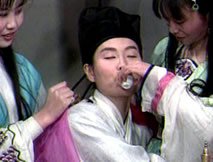 嘗樂坊中仲平放浪形骸的樣子,洪洛此刻無心計較,他只要仲平趕回家探視婉兒。上前他急喊著:「『王魁』,『王魁』,婉兒落水了,快跟我回去