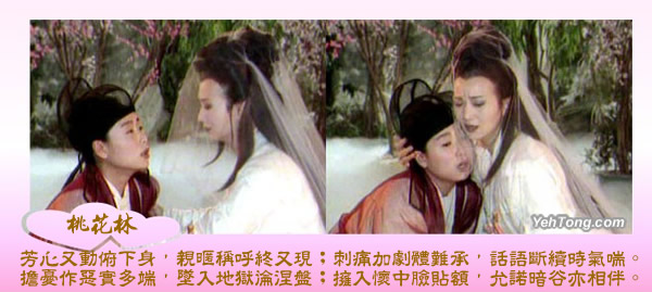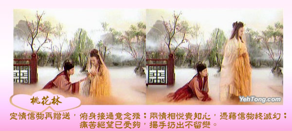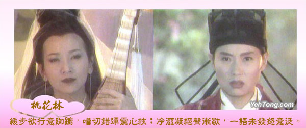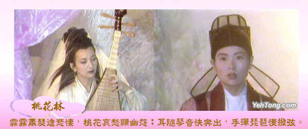 霏霧蕭瑟透悲悽,桃花哀愁顯幽怨;